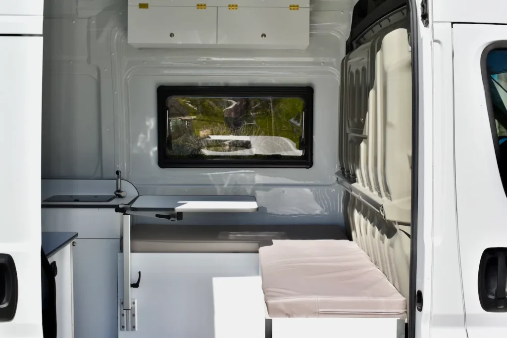 Un aménagement de Peugeot Expert par Equipage Camper Van au top ! L’équipe a pris le temps de comprendre nos besoins familiaux (1 enfant et bientôt 2) et nous a guidés avec des conseils de vrais passionnés. Toit relevable, banquette homologuée, vitres, meubles, isolation… des équipements de qualité et des finitions intérieures parfaites. Après 6 mois d’utilisation intensive, on adore ! On reviendra pour un panneau solaire et un store, c’est sûr. Merci encore !
